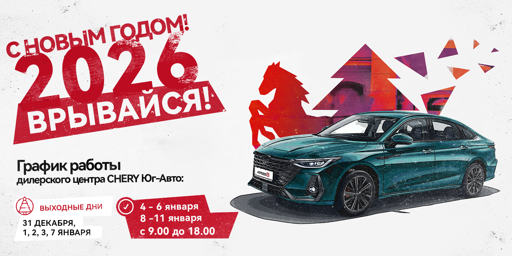 Обратите внимание: в праздничные дни дилерский центр CHERY Юг-Авто будет работать по следующему графику: