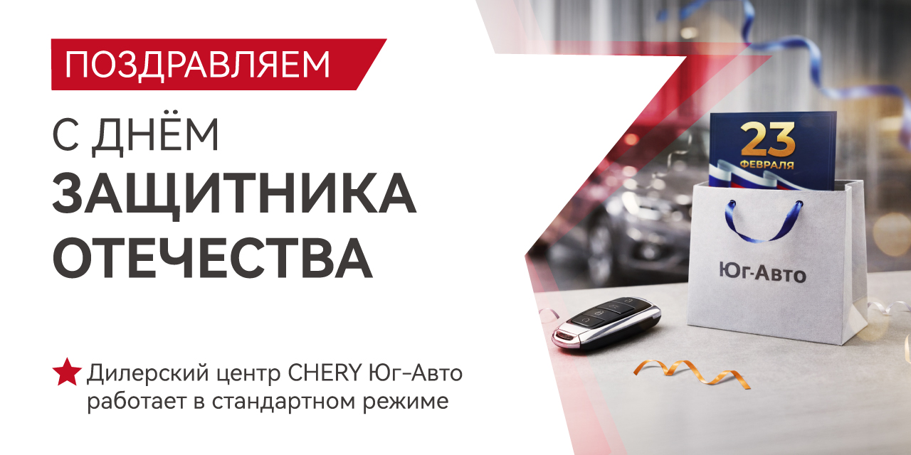 От лица дилерского центра CHERY Юг-Авто поздравляем вас с Днём защитника Отечества!